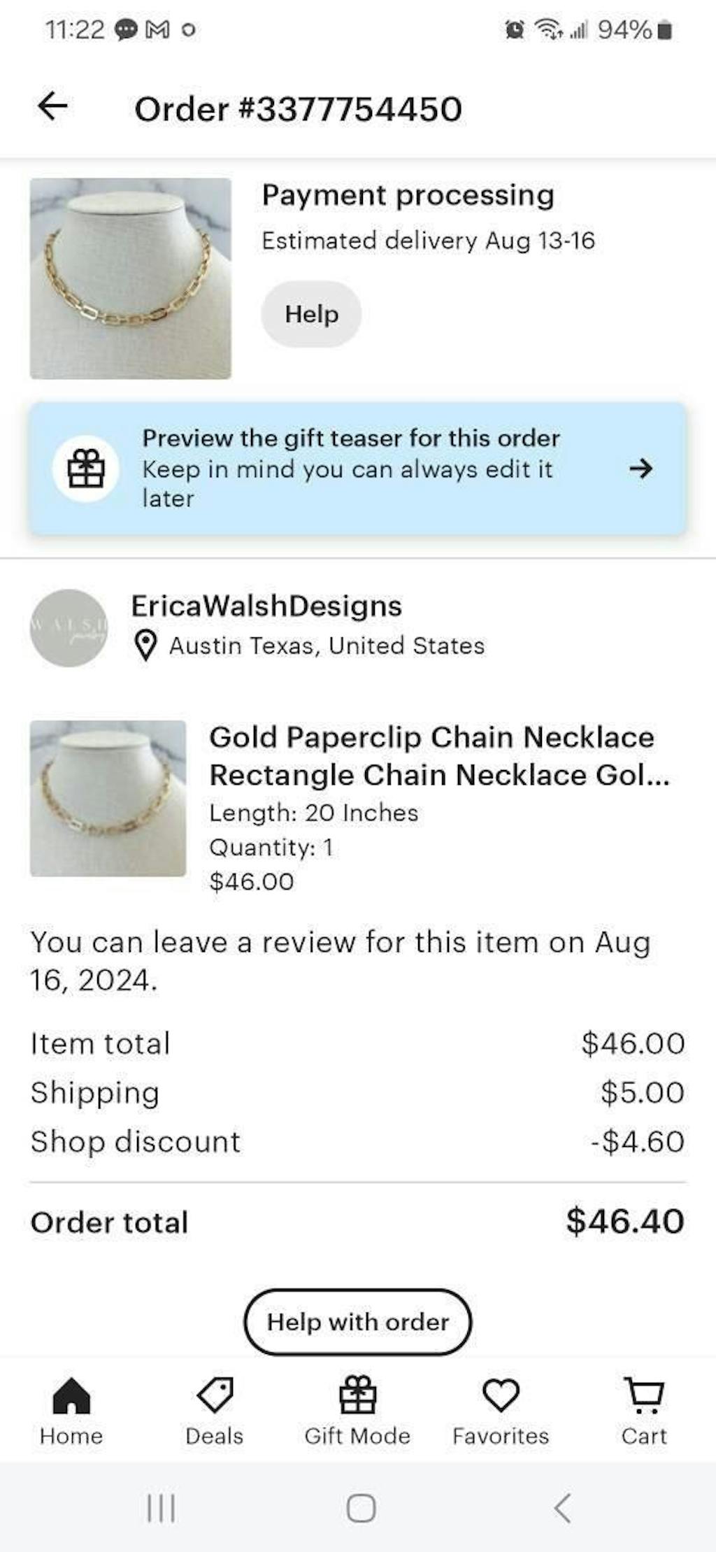 Item came nicely packaged in a velvet pouch. Shipping time was appropriate as expected. The necklace came in perfect condition, just as described by the seller. The necklace is very shiny and will definitely be noticed. I ordered the 16 inch. The necklace can definitely be layered. It is also of a decent weight and doesn't feel flimsy or cheap. Will keep it in its velvet pouch when not wearing it. Very pleased with the look and quality of this necklace. I do recommend.