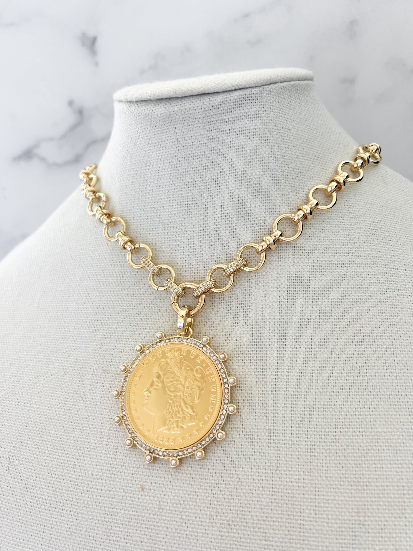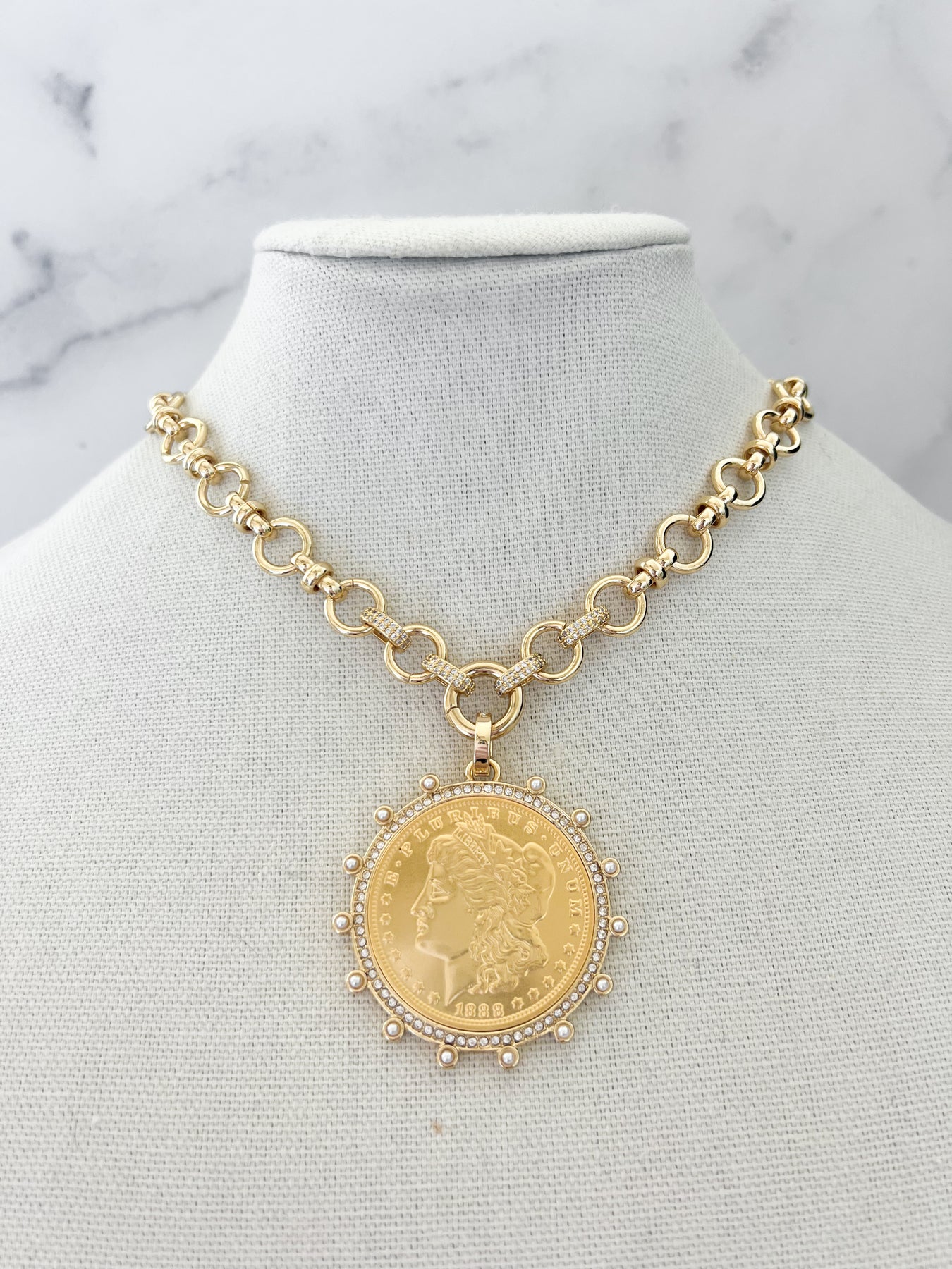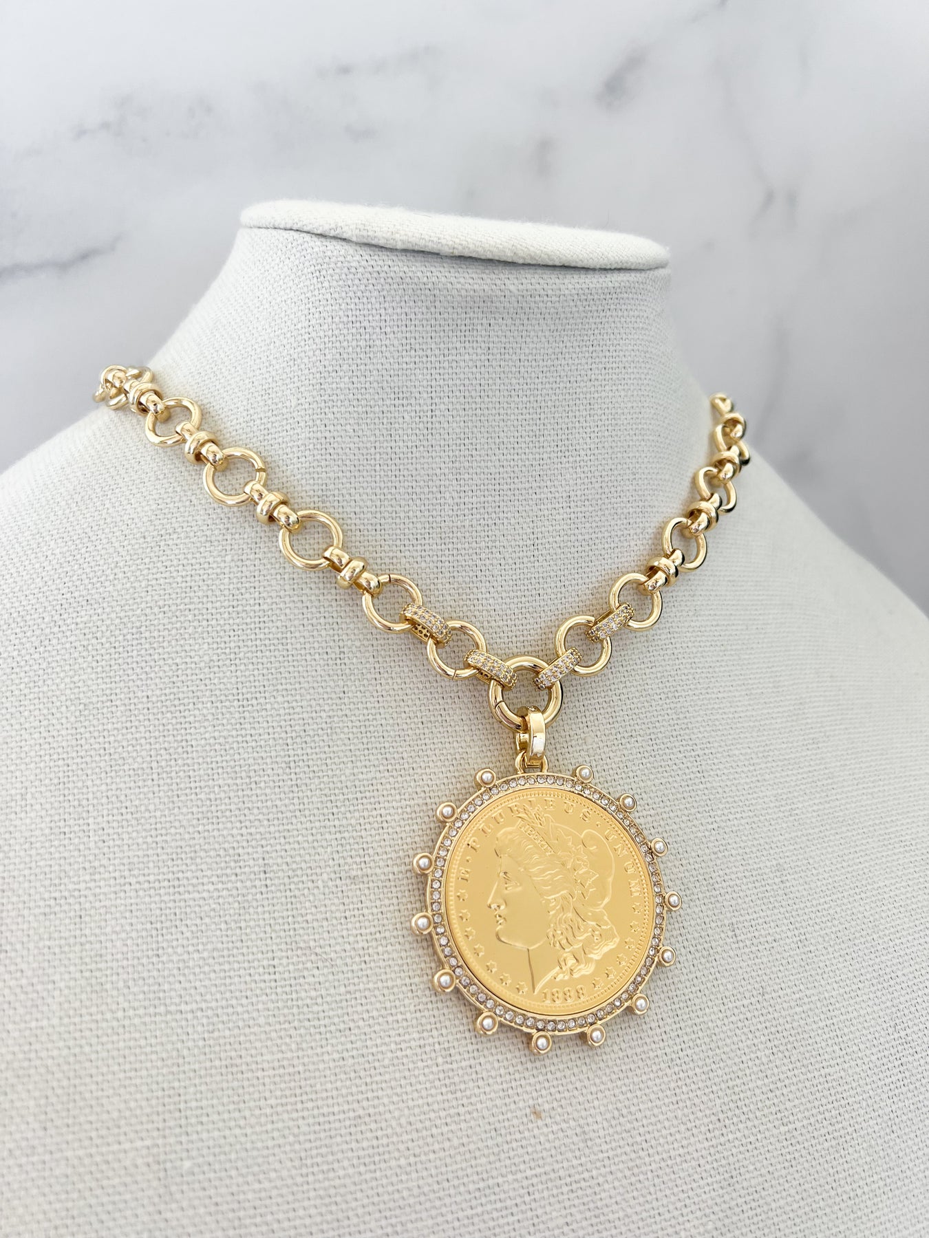Gold Morgan Dollar Vintage Stone Coin Necklace