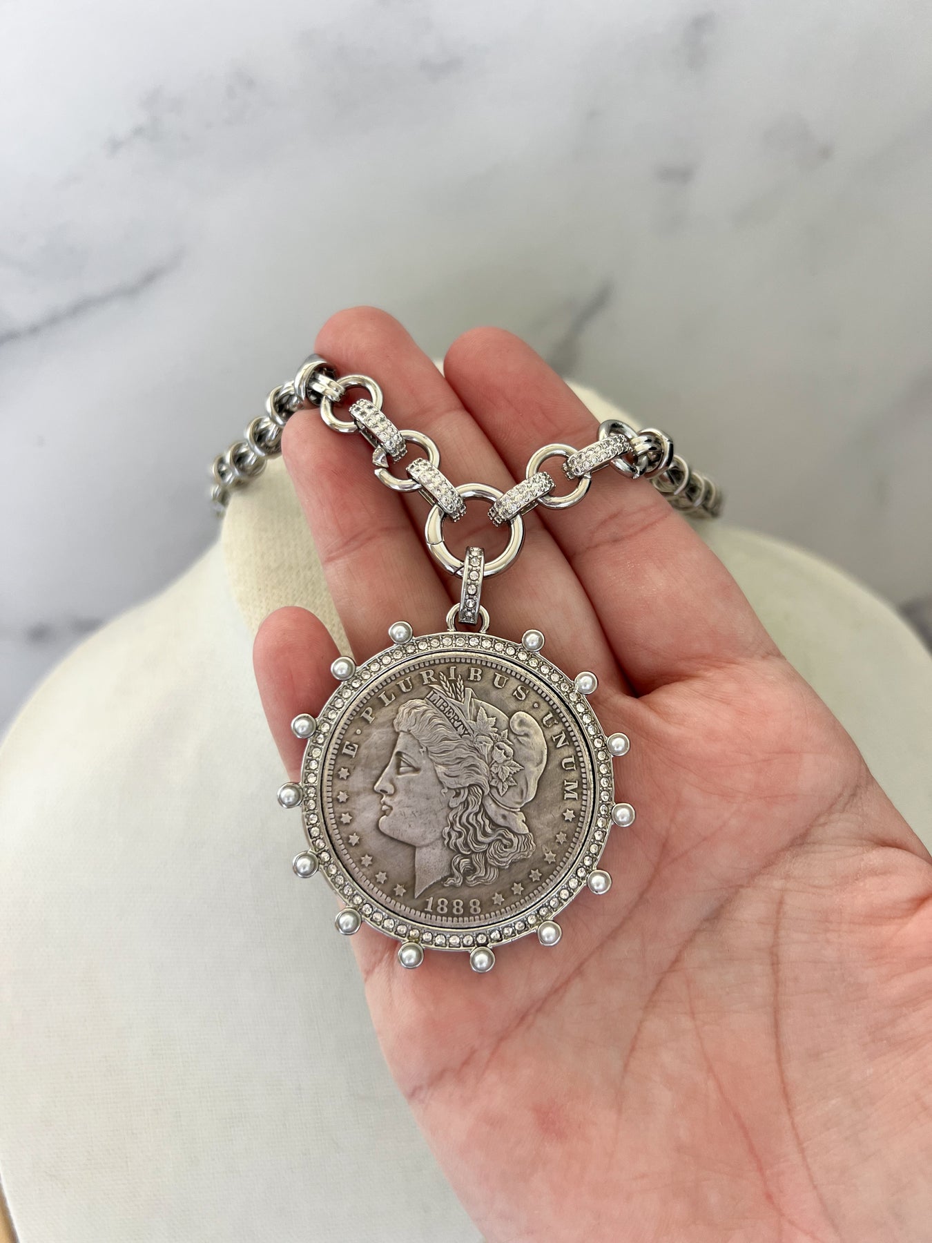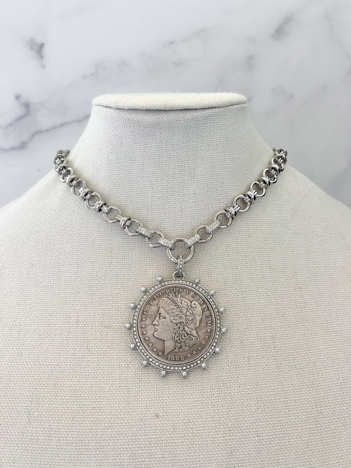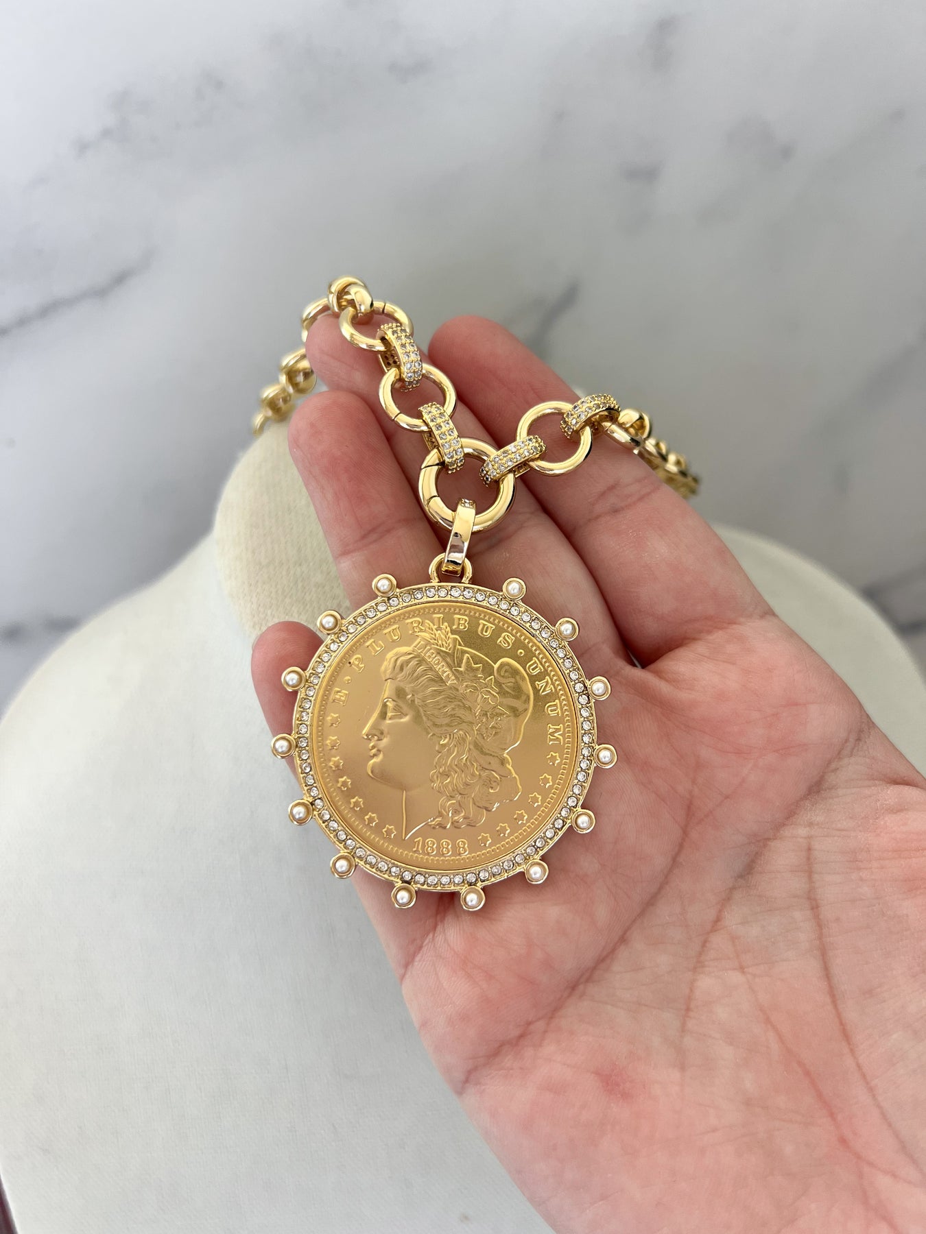 Gold Morgan Dollar Vintage Stone Coin Necklace