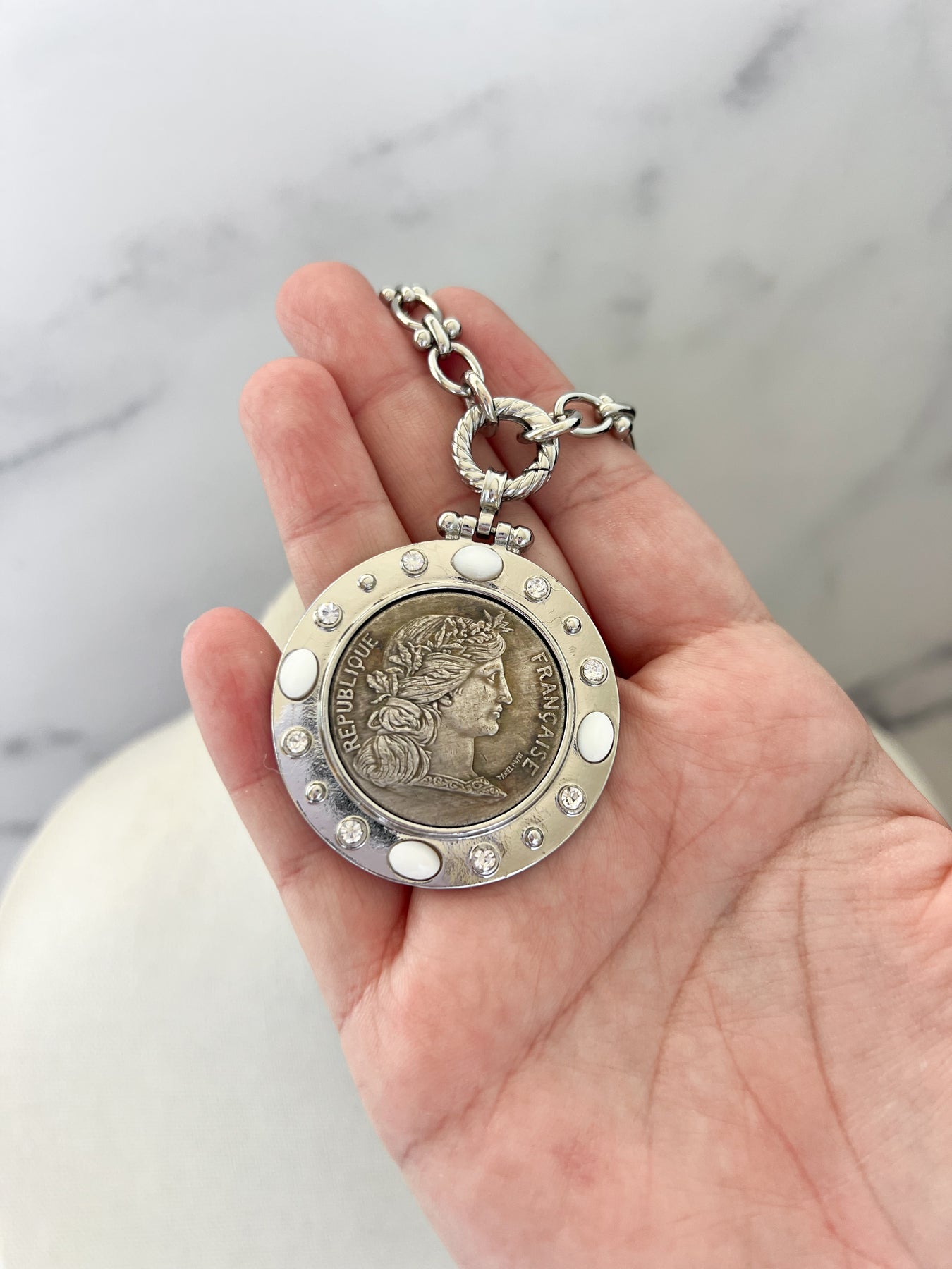 Silver Marianne Coin Necklace